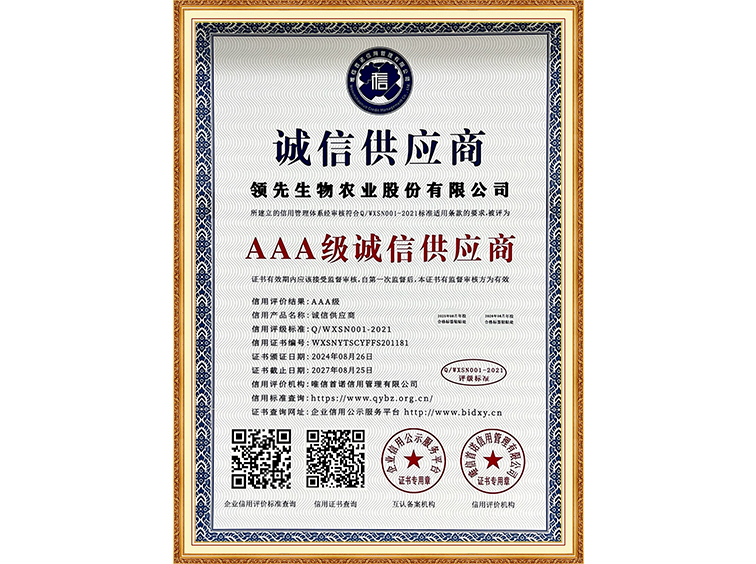AAA級(jí)誠信經(jīng)營示范單位