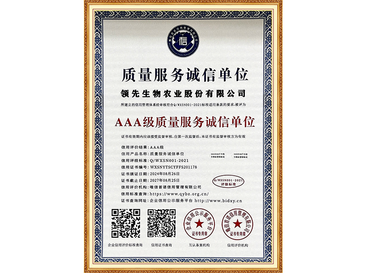 AAA級(jí)誠信經(jīng)營示范單位